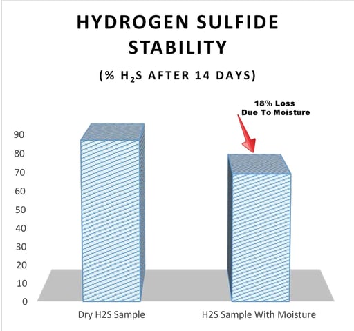 process sampling systems can lead to artificially low reporting of H2S content in gas and oil wells and petrochemical feedstock; resulting in system corrosion, low process yield, high processing cost and catalyst damage. A comparison of a dry vs. wet sample cylinder (below) tells the story. A dry sample cylinder retains about 85% of the sample after 14 days of storage. The moisture contaminated sample cylinder (right) retains less than 70% of the sample after 14 days; an 18% reduction in H2S sensitivity!
